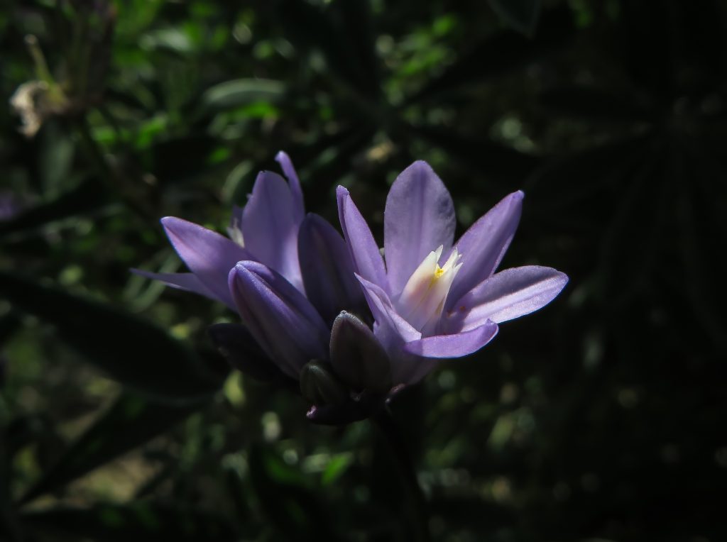 In any case, Blue Dicks is too beautiful to let its names (whether Latin or English) upstage the flower itself. They are especially striking for the way that a very slender stem (ranging from as short as 4″ all the way up to 20″ tall) supports an impressively large fist or “umbel” of blossoms. These umbels consist of up to fifteen bluish to reddish-purple blossoms, each of which has white stamens that form a small white crown, and the crown itself is marked by yellow pollen at its center, giving the impression of a flickering white candle, cradled by a lilac-colored vase. It’s hard not to admire this flower!